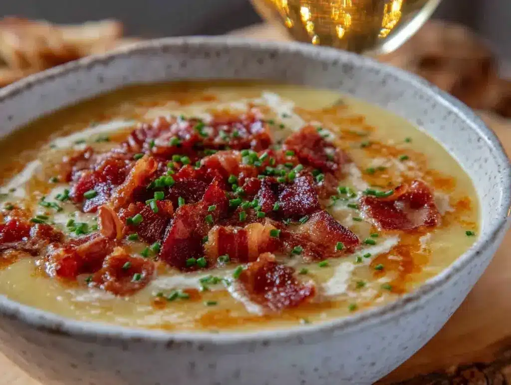 Creamy Irish Potato Leek Soup Recipe Easy Homemade with Crispy Bacon Topping