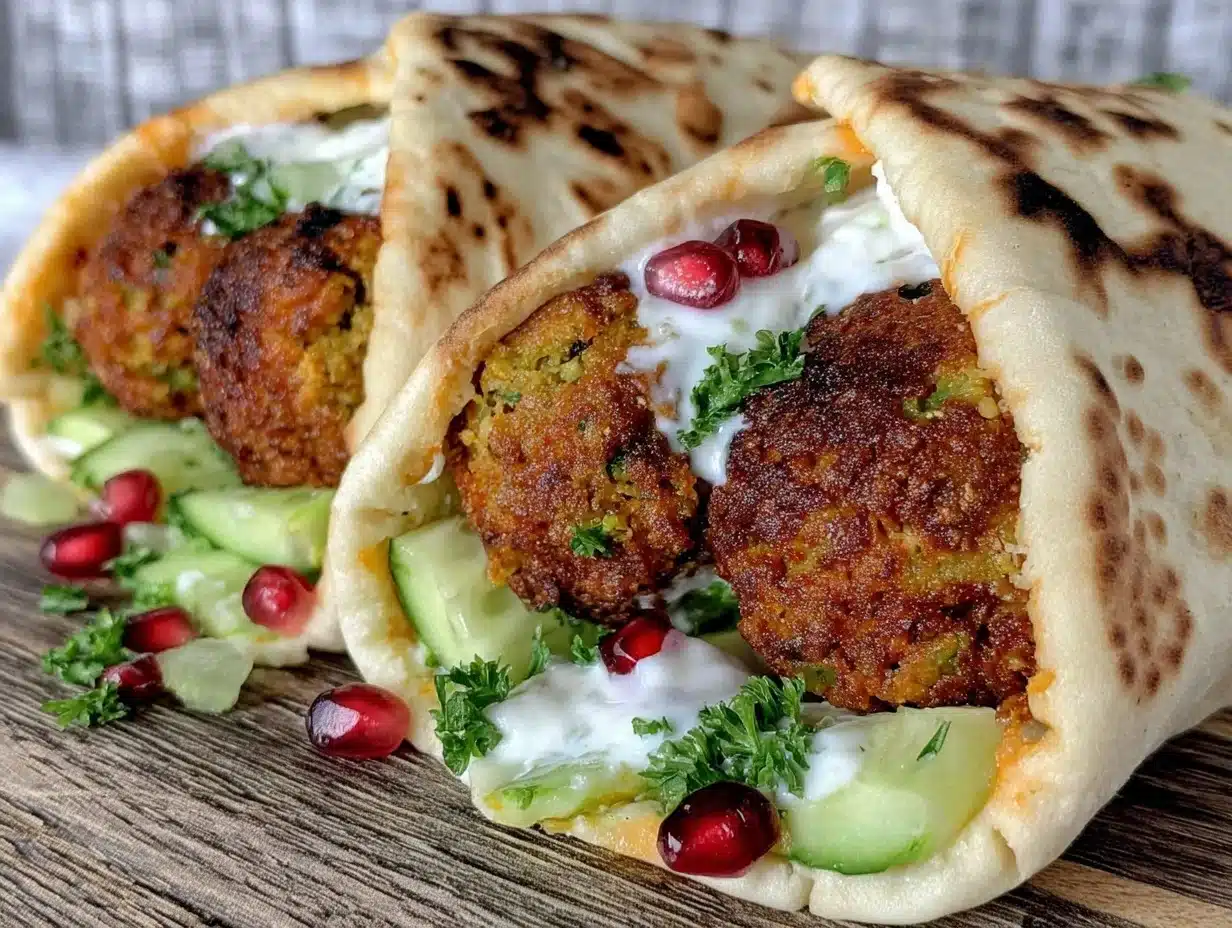 - Assemble wraps by spreading cucumber yogurt sauce on flatbread, adding 3-4 falafel balls, optional fresh greens or sliced tomatoes, and rolling up snugly.