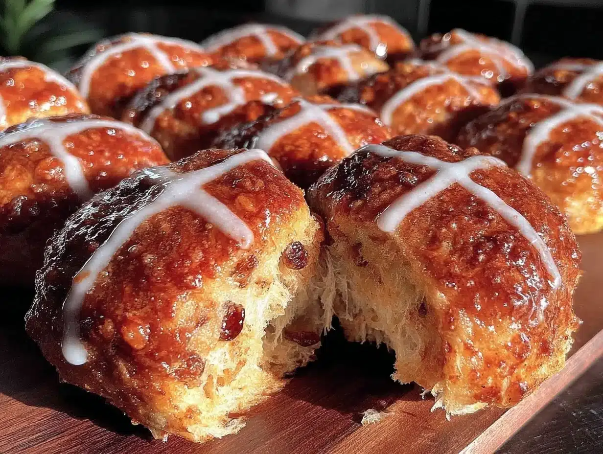 These fluffy, traditional hot cross buns are pillowy-soft, gently spiced, and studded with plump fruit. Perfect for Easter or any cozy brunch, they feature a golden sugar glaze and creamy icing cross for a nostalgic, crowd-pleasing treat.