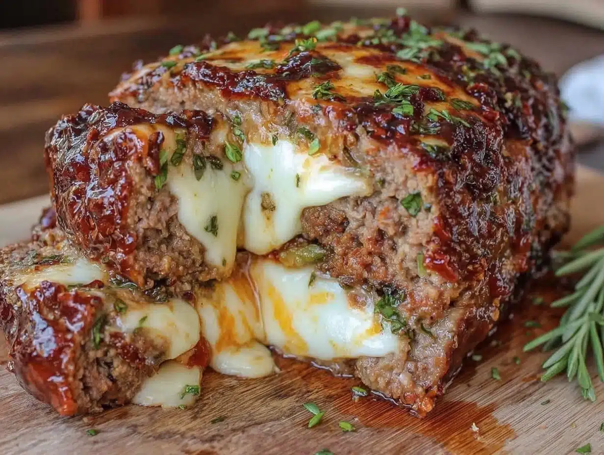 A juicy and flavorful meatloaf stuffed with melty mozzarella and tangy sun-dried tomatoes, perfect for cozy dinners and crowd-pleasing meals.