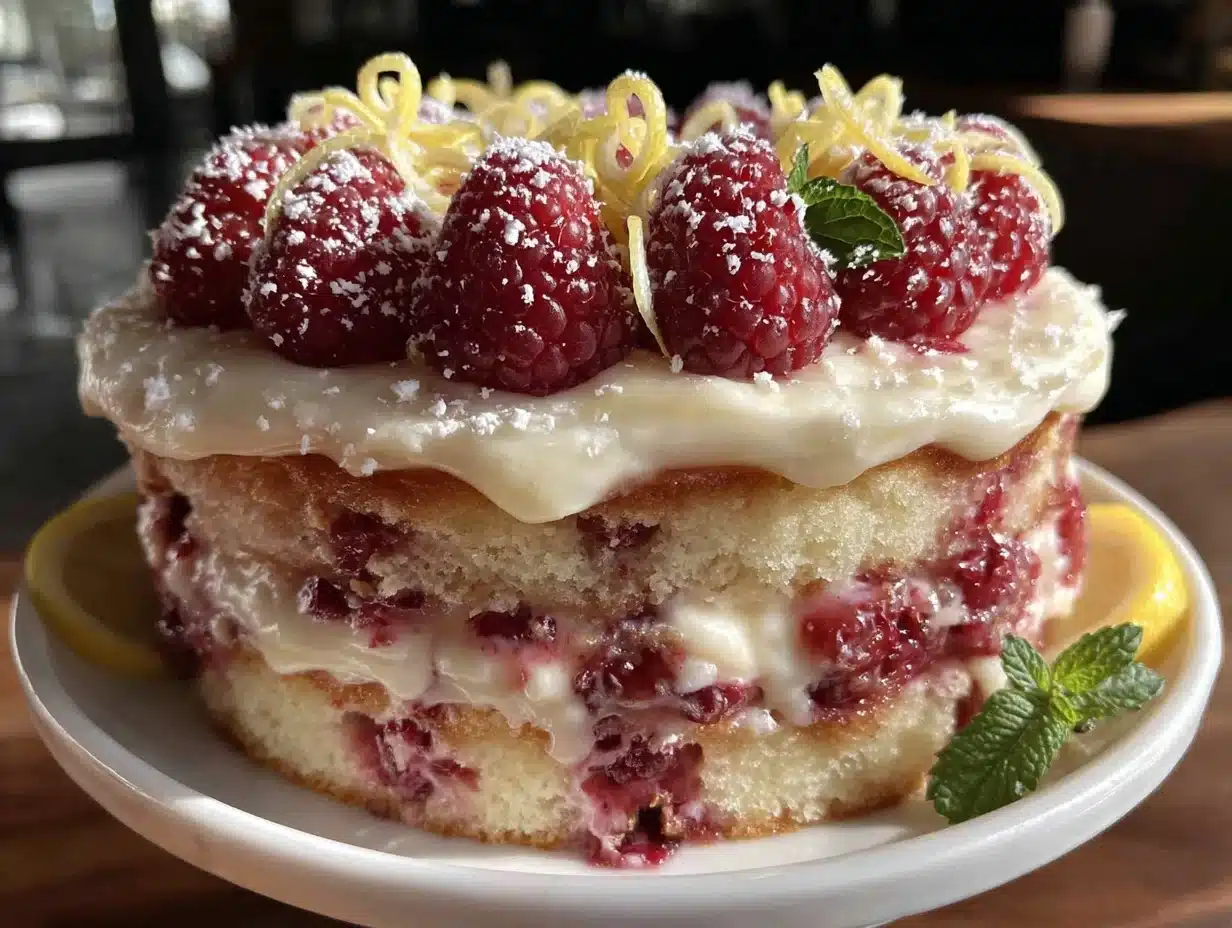 This isn’t just another lemon cake recipe. The blend of real lemon juice, lemon zest, and mashed raspberries gives it a punchy, natural flavor you won’t find in boxed mixes. The secret is folding in the raspberries gently—this keeps bright pops of berry in every slice (and a gorgeous marbled look that’s Instagram-ready). The frosting? It’s a cloud of creamy lemon buttercream with swirls of raspberry puree—so good, you’ll want to eat it by the spoonful.